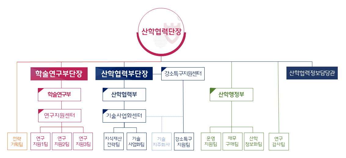운영지원팀 업무 및 관인 관리 총괄 산학협력단 인사 및 조직 관리 총괄 산학협력단 간접비 운영 총괄 |